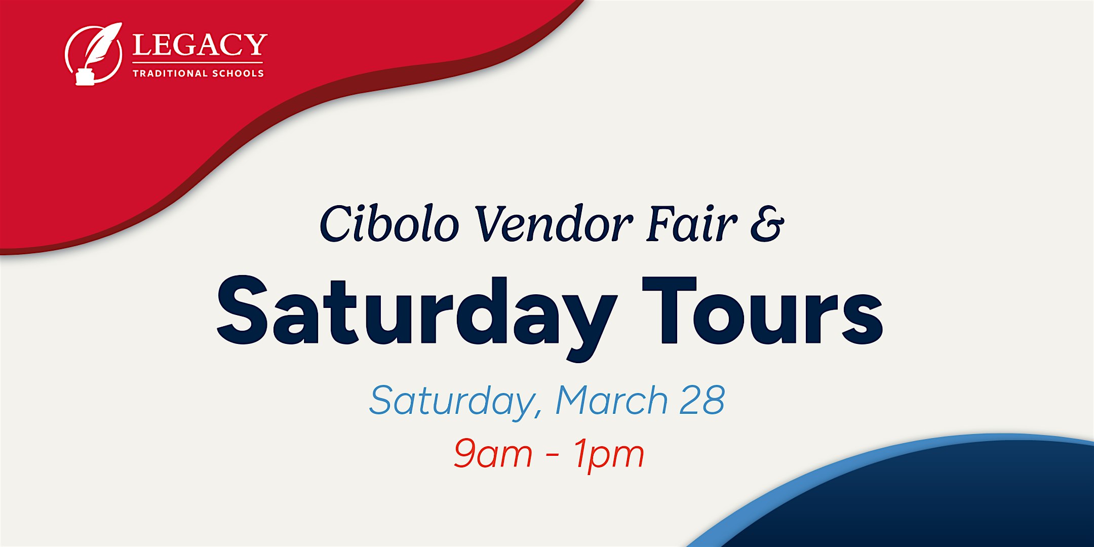 Interested families are invited to join us for tours during the Cibolo Vendor Fair!Join us for Saturday Tours & Vendor Fair at Legacy Traditional School – Cibolo on Saturday, March 28 from 9am - 1pm.We’re hosting Saturday Tours along with a fun vendor fair, so there’ll be plenty to explore! Families can browse a mix […]